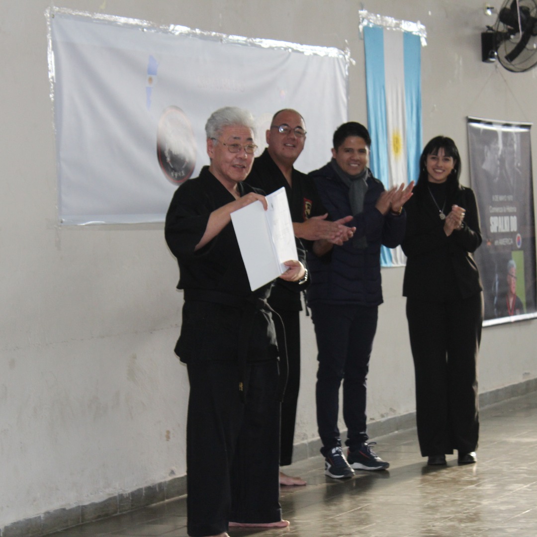 Además de las correcciones técnicas, la clase también contó con la participación de los miembros del Honorable Consejo Deliberante de Bahía Blanca, Sebastián Nieto y Fiorella Damiani, quienes reconocieron la importancia de este evento para la comunidad otorgando a nuestro Maestro Dae Won Yoo un certificado de interés municipal. En un acto significativo, subrayando el valor cultural y educativo de las artes marciales y la contribución del maestro Dae Won a su difusión y perfeccionamiento. Este reconocimiento no solo destacó la relevancia del evento, sino también el impacto positivo que tiene en la formación de valores y disciplina entre los participantes.