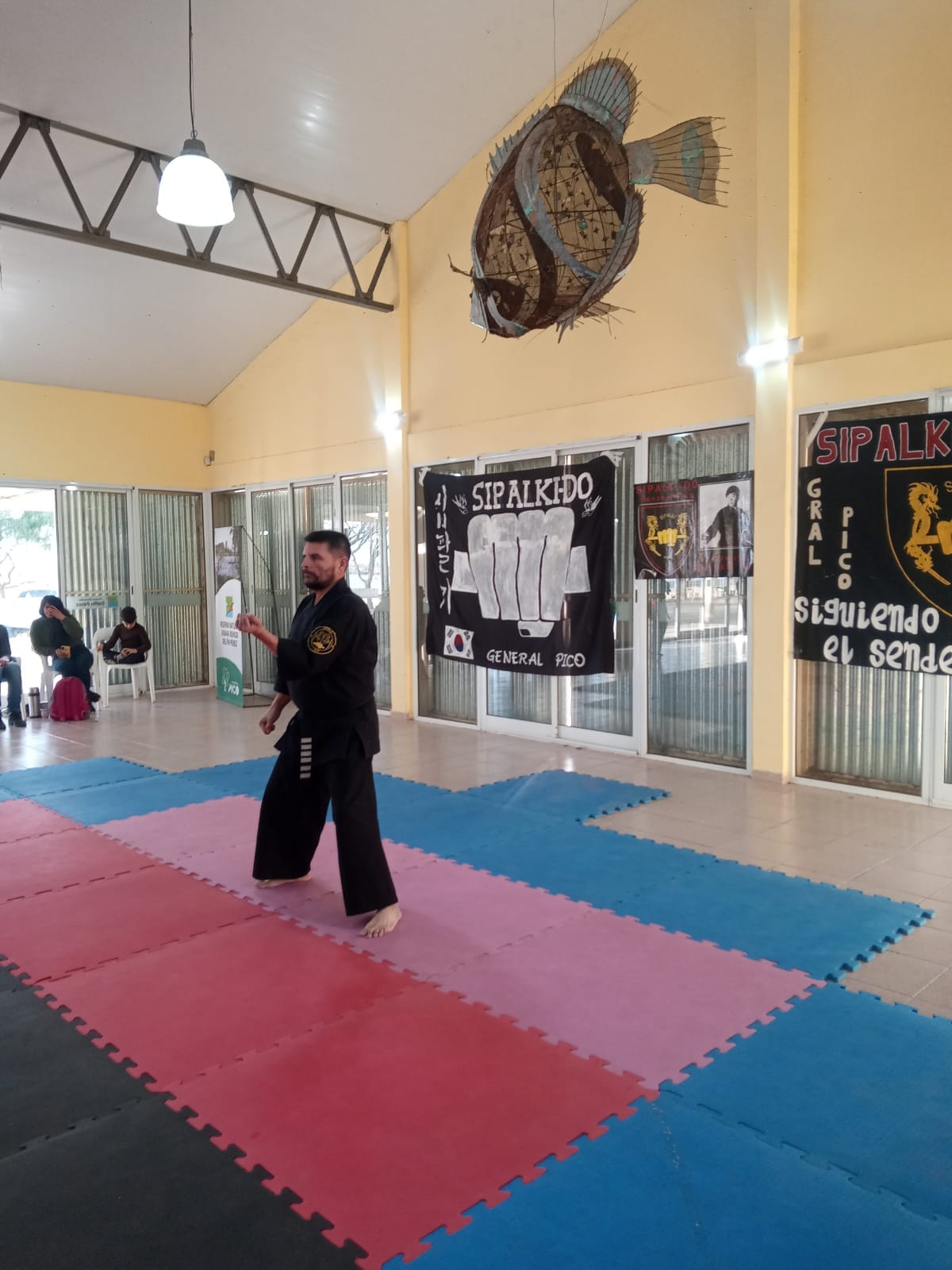 Posteriormente a las 14hs se llevó a cabo la primer clase abierta , dictada por el M. Dae Won Yoo, inaugurando así, de manera formal, la Plaza de las Artes Marciales.