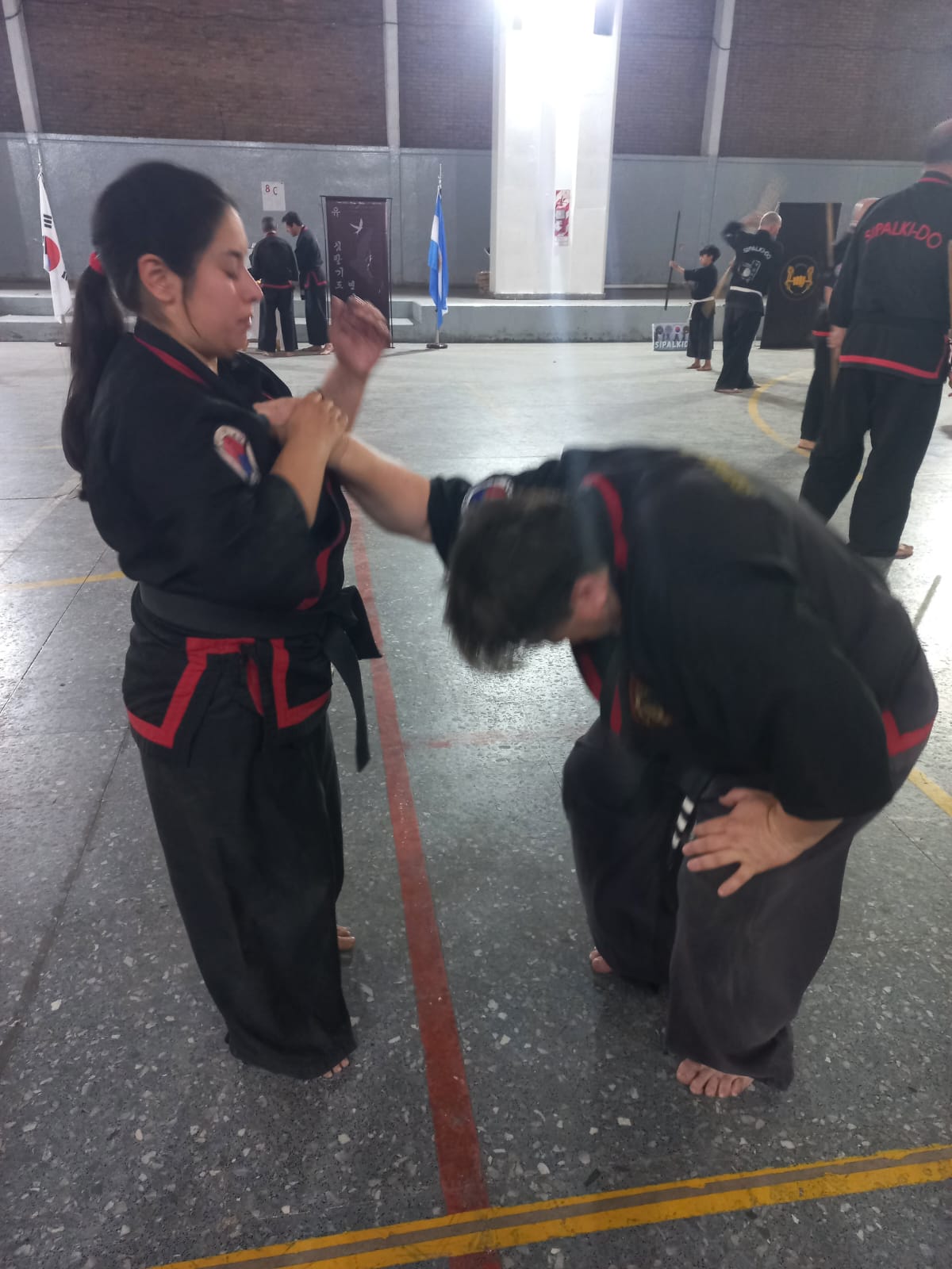 Posteriormente a las 14hs se llevó a cabo la primer clase abierta , dictada por el M. Dae Won Yoo, inaugurando así, de manera formal, la Plaza de las Artes Marciales.