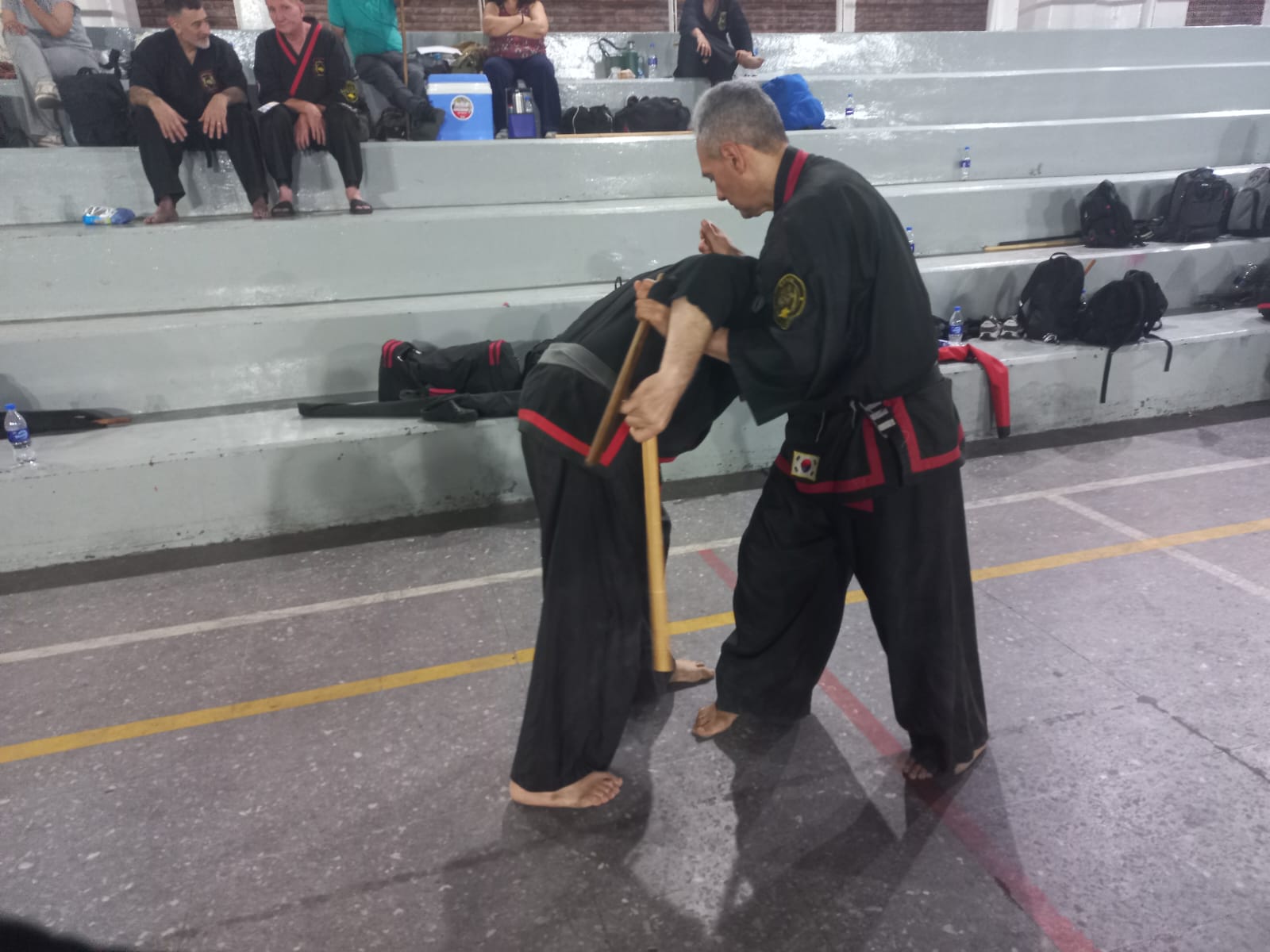 Posteriormente a las 14hs se llevó a cabo la primer clase abierta , dictada por el M. Dae Won Yoo, inaugurando así, de manera formal, la Plaza de las Artes Marciales.
