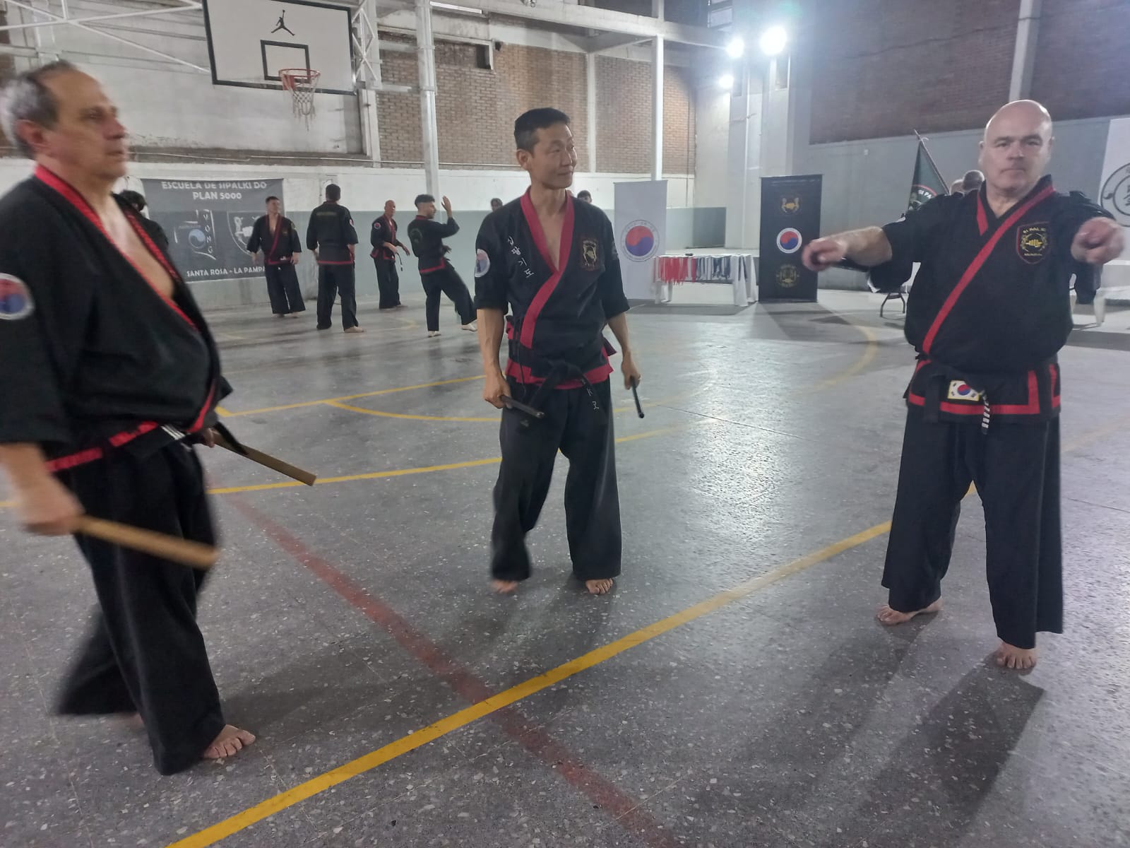 Posteriormente a las 14hs se llevó a cabo la primer clase abierta , dictada por el M. Dae Won Yoo, inaugurando así, de manera formal, la Plaza de las Artes Marciales.