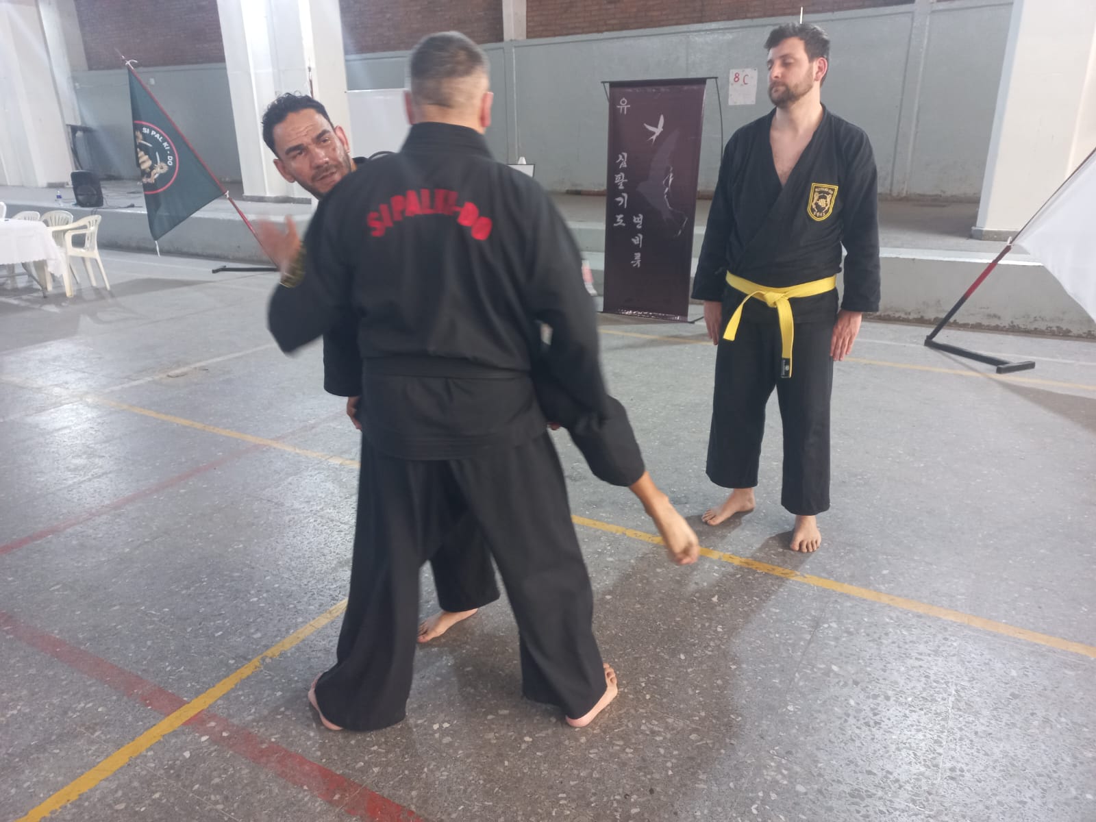 Posteriormente a las 14hs se llevó a cabo la primer clase abierta , dictada por el M. Dae Won Yoo, inaugurando así, de manera formal, la Plaza de las Artes Marciales.