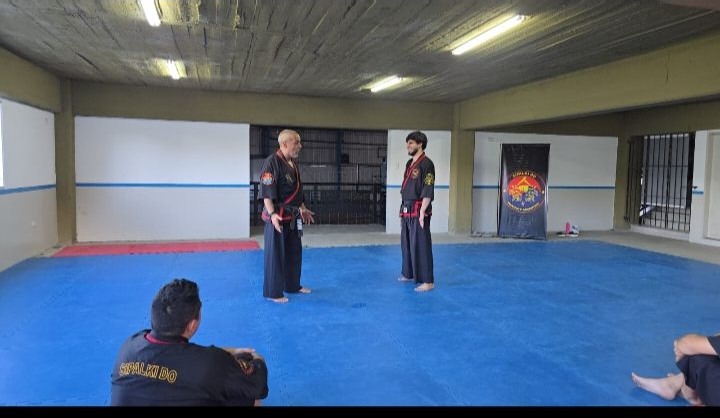 Posteriormente a las 14hs se llevó a cabo la primer clase abierta , dictada por el M. Dae Won Yoo, inaugurando así, de manera formal, la Plaza de las Artes Marciales.