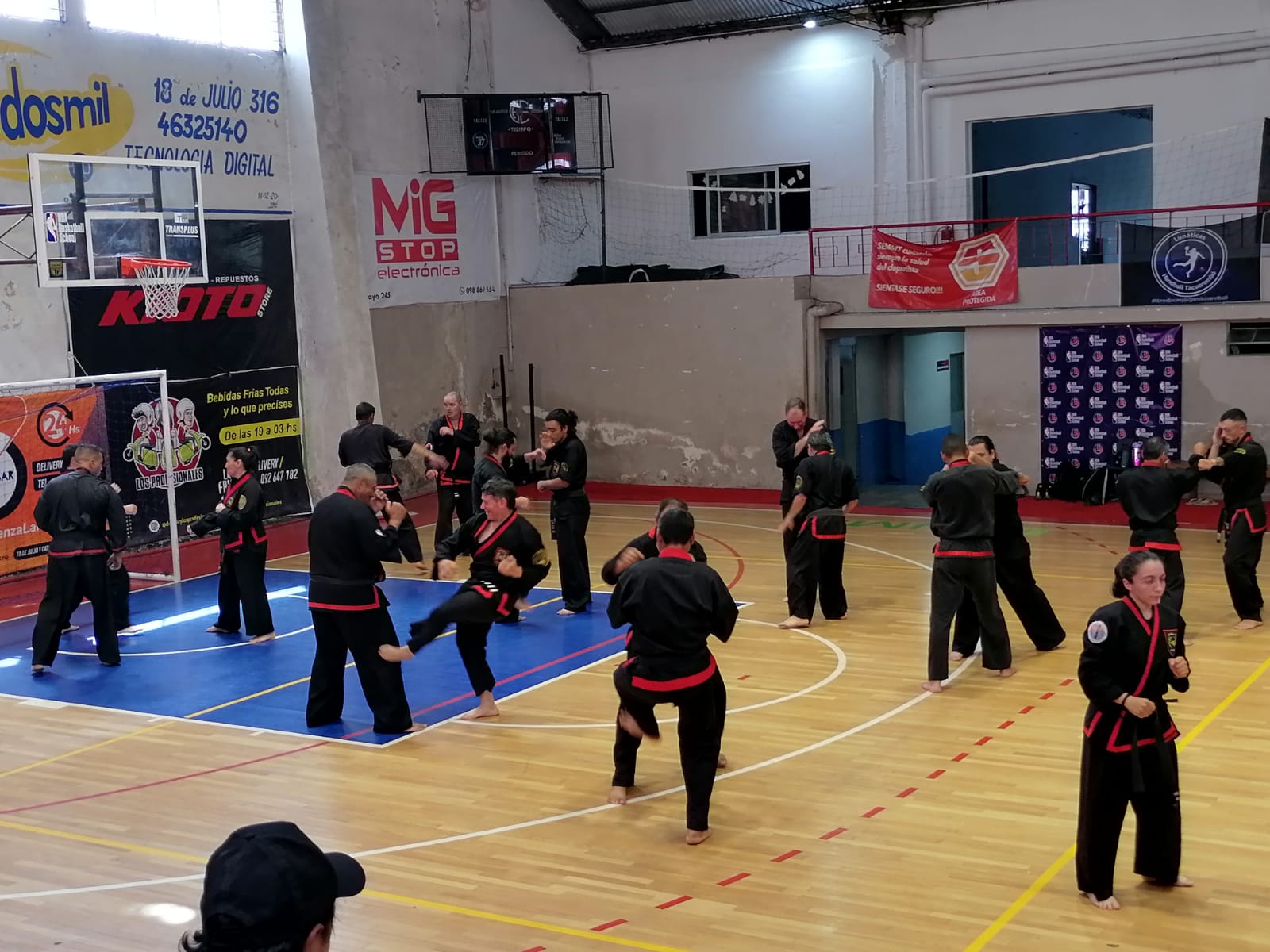La Clase inicia a las 15 hs. con el calentamiento a cargo de la sabom Paola de Lima, luego tuvo su bloque el Mtro. Marcelo Paz, a continuación el Mtro. Miguel Costales, y para culminar, el Mtro. Alvaro Ciccone. El Mtro Dae Won Yoo inicia su clase, dirigida a todas las graduaciones a las 15.30 hs. Realizó técnicas de mano vacía con combinaciones de defensa y ataque desde la guardia. Luego Guibon Donyak estático efectuando múltiples combinaciones y por último, un bloque de Ho Sin Sul. El Maestro pone principal hincapié en técnicas simples muy efectivas. En cada segmento, se realizan prácticas en pareja. Se procede a un pequeño paréntesis e inicia la clase para cintos rojo y negro (18 hs.) enfocada en Guibon Donyak y Hyong (mientras transcurre éste bloque, se efectúa el examen teórico a los alumnos aspirantes). El examen Técnico-Práctico inicia a las 19 horas y finaliza a las 21.30 horas. Se contó con la concurrencia de Profesores y Alumnos de distintos puntos del país (Montevideo, Piriápolis, San Carlos, Maldonado, Paysandú, Paso de los Toros, Salto y Tacuarembó).